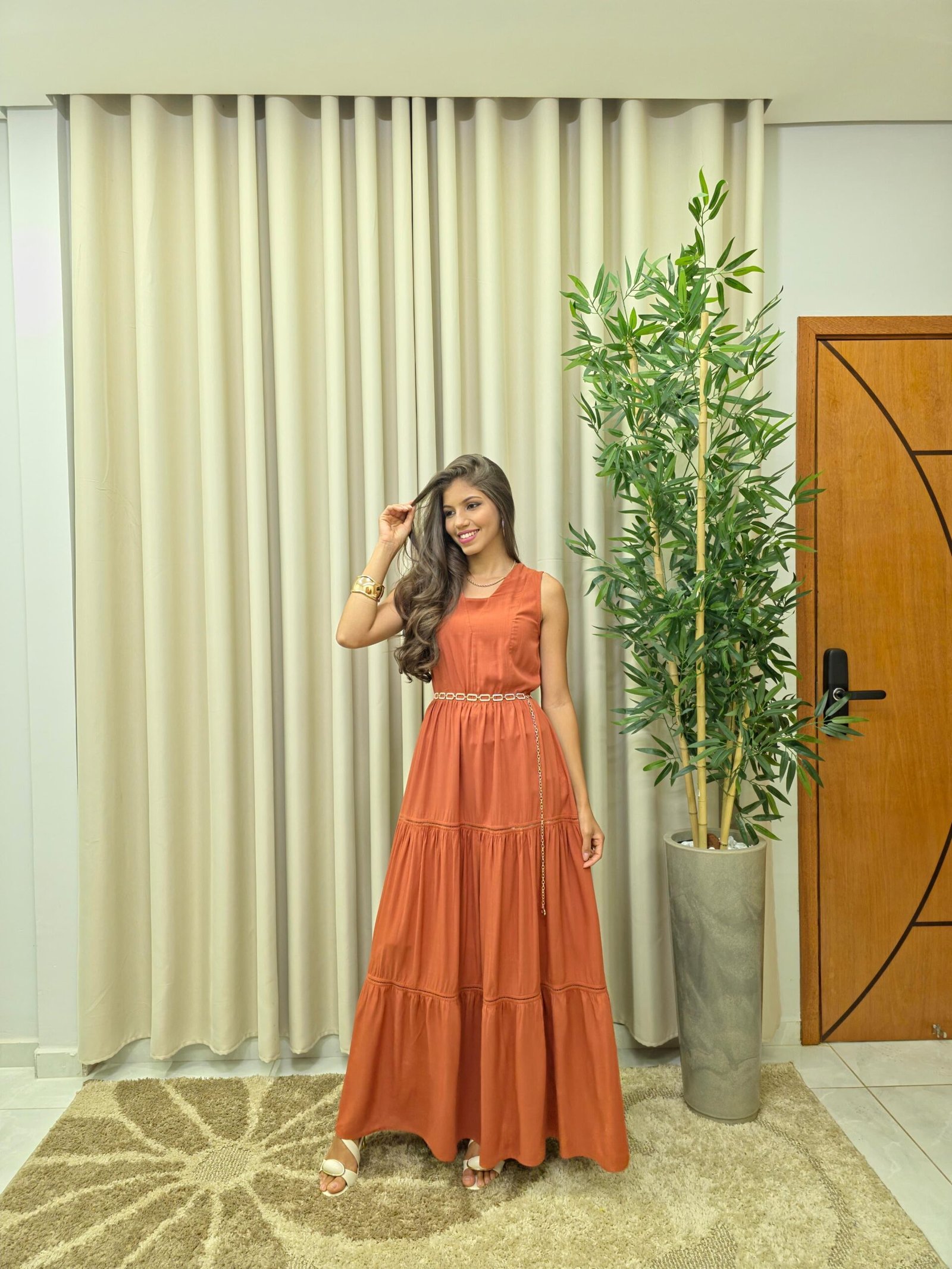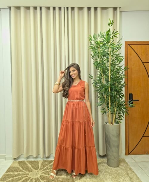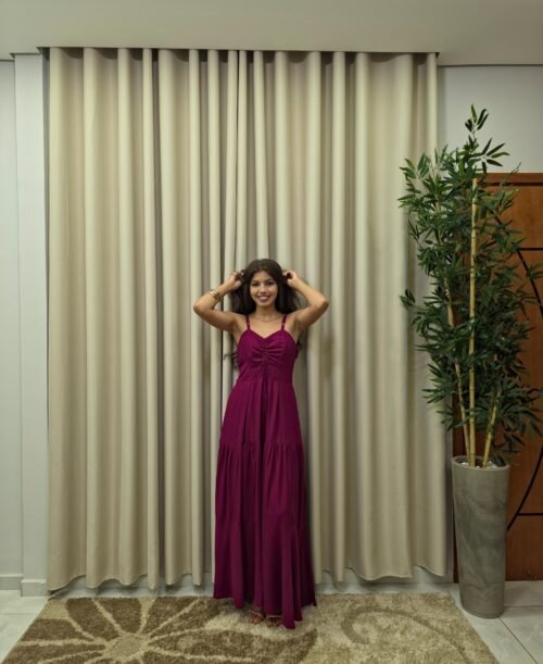 Vestido Longo de Alça Ajustável Liso Marsala – Sol da Justiça