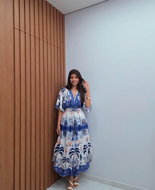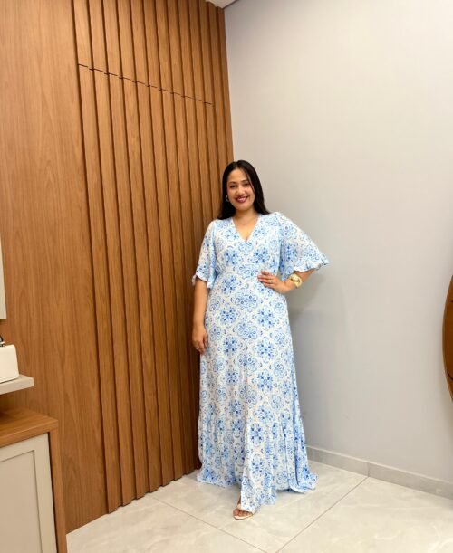 Vestido Longo Estampa Azulejo Azul – Sol da Justiça