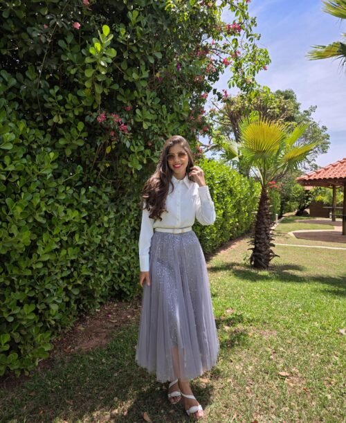 Saia Feminina de Tule Midi Cinza