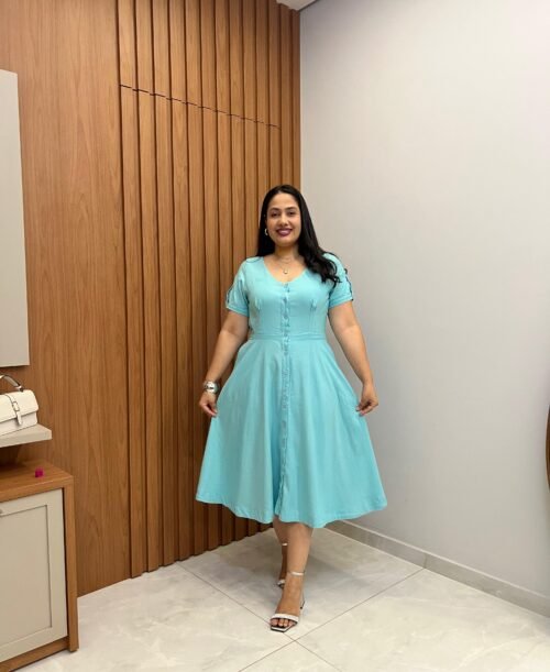 Vestido de Linho Elegante Azul Turquesa – Sol da Justiça