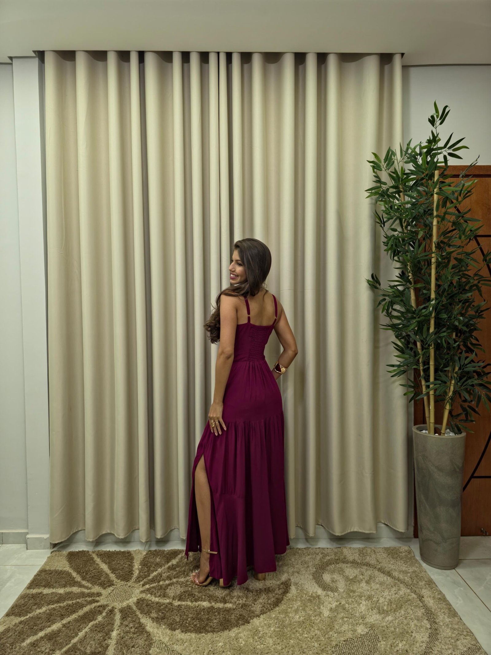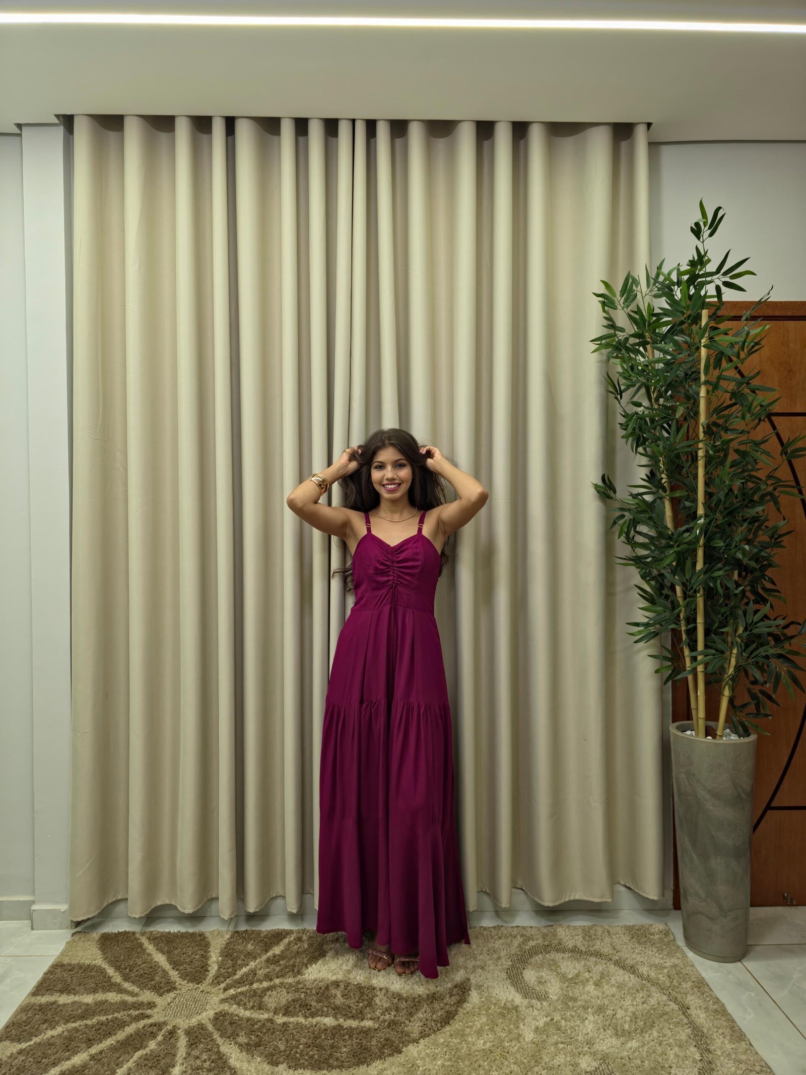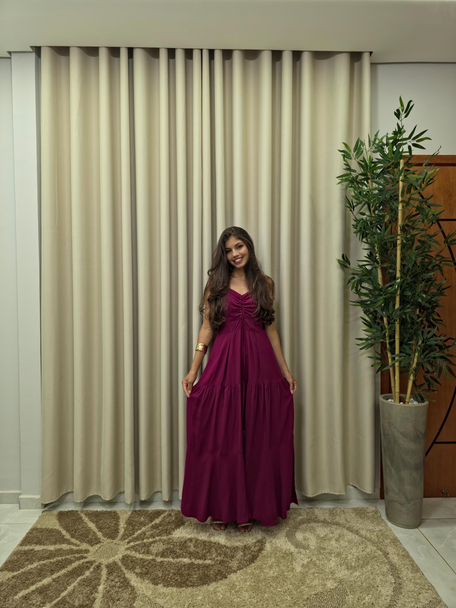 Vestido Longo de Alça Ajustável Liso Marsala - Sol da Justiça quantidade